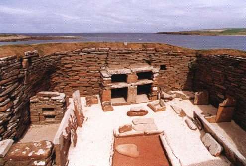 Skara BraeEine Steinzeitsiedlung auf der Insel Orkney. Sie stammt aus der Zeit von 3000 v.Chr., also noch bevor in Ägypten die Pyramiden gebaut wurden. Es ist die älteste Steinzeitsiedlung von Europa. Schottland war also schon lange vor den bekannten Stämmen besiedelt, nur weiss man von dieser Zeit nicht viel. Aus der etwas späteren Zeit stammen auch die bekannten "Steinkreise". |