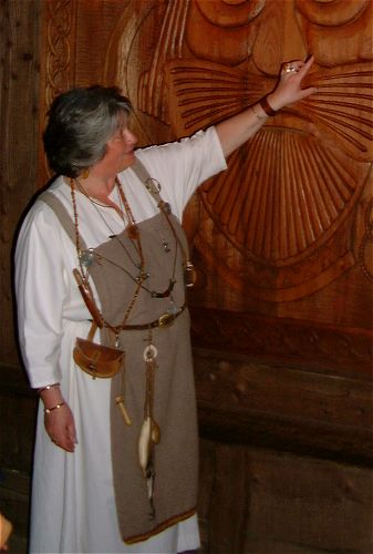 sehen hier eine Wikingerfrau vor einem Bild Thors. Was ist besonders